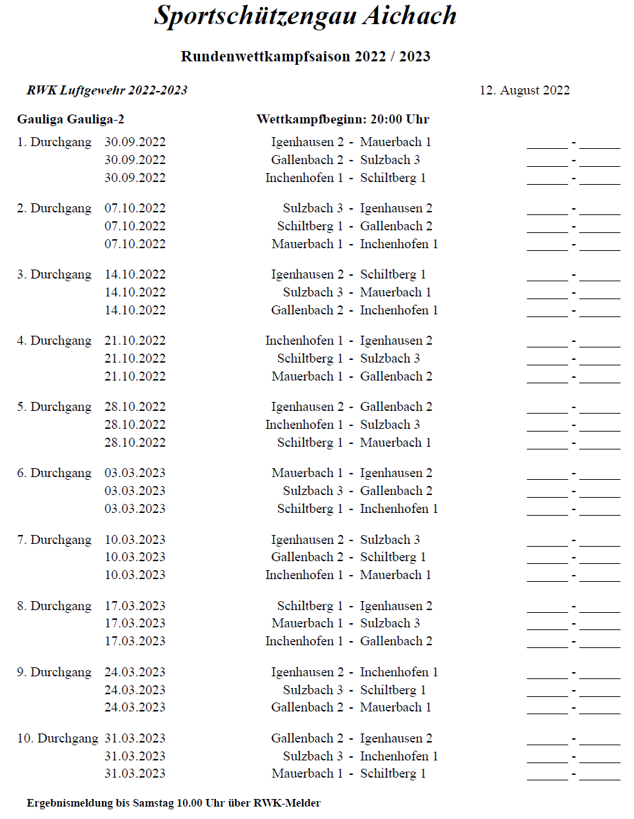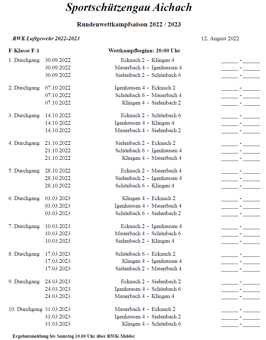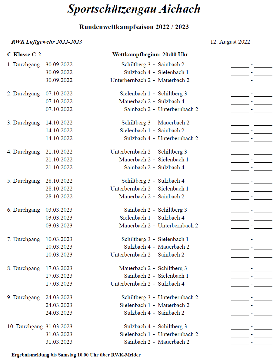 - 30.09.2022: Hinrundenstart der Rundenwettkämpfe 22/23